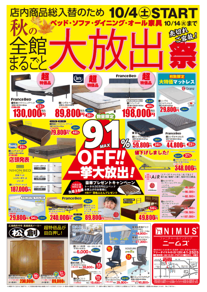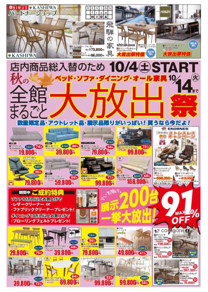 展示アイテムやアウトレット品を中心とした「大放出祭」を開催いたします!